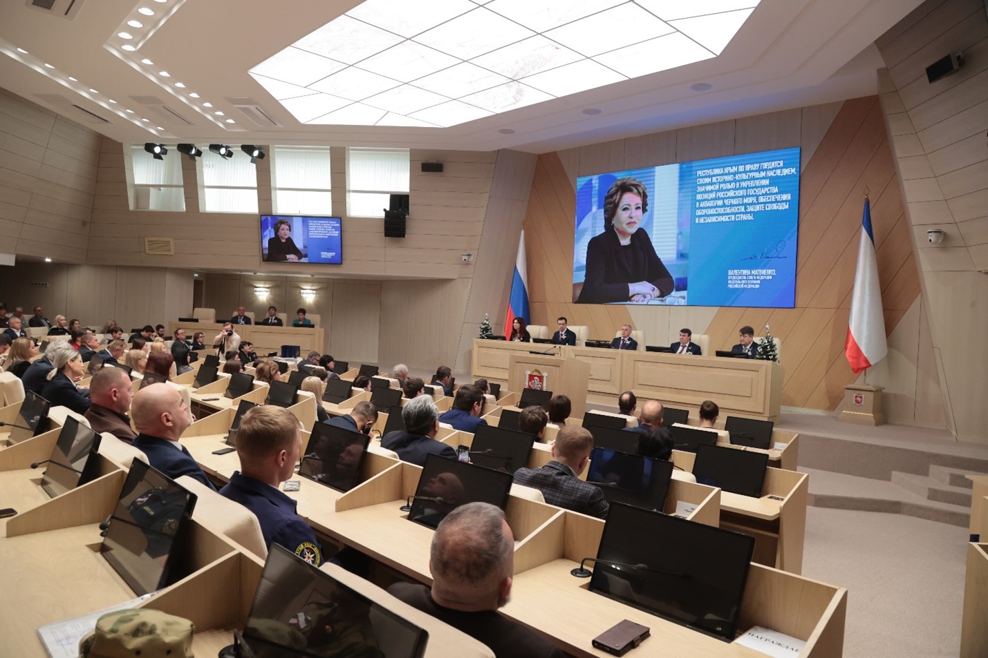 В адрес руководства Республики и всех жителей Крыма поздравление с Днем Республики Крым направила Председатель Совета Федерации Федерального Собрания Российской Федерации Валентина Матвиенко.
