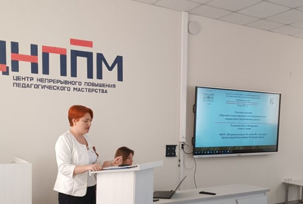 Выступающие рассказали об опыте реализации республиканского проекта «Образовательные вертикали» в курчатовских классах МБОУ «Петровская школа №1 имени И.А. Егудина» Красногвардейского района Республики Крым с акцентом на исследовательскую деятельность и достижения учащихся.