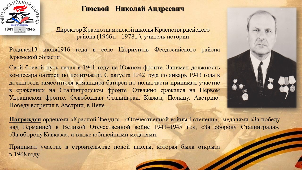 В мае 2023 года Институт приступил к составлению «Учительского пантеона Республики Крым», в который вошли и войдут наши крымские учителя, прошедшие горнило Великой Отечественной войны.