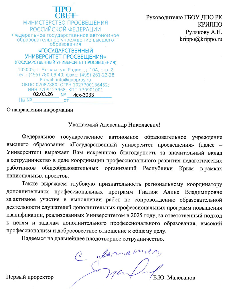 Спасибо всем работникам ГБОУ ДПО КРИППО за организацию курсов на таком высоком уровне. Всегда приятно к вам приезжать. Отдельное спасибо Наталье Ивановне Рашпиль за чуткость, доброжелательность, терпение и огромный профессионализм, за психологический комфорт, созданный во время занятий. Благодаря Вашей помощи мы повысили свой профессиональный уровень, что обязательно положительно скажется на качестве нашей работы.