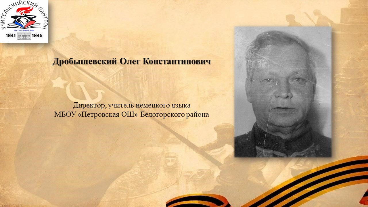 Дробышевский Олег Константинович Директор, учитель немецкого языка МБОУ «Петровская ОШ» Белогорского района |