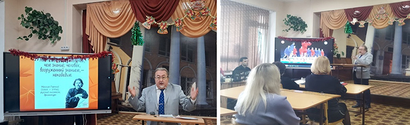 Опыт работы по формированию речевой культуры школьников посредством музейной педагогики представил директор Ивановской школы Нижнегорского района, руководитель проекта «Школьный музей творческого наследия Владимира Ивановича Даля как платформа для формирования речевого мастерства, культуры, патриотизма обучающихся» Котовец Дмитрий Вдадимирович, котрый остановился на вопросах формирования духовно-нравственных ценностей. Осветил направления исследовательской работы обучающихся на основе сборника В. И. Даля «Пословицы русского народа».