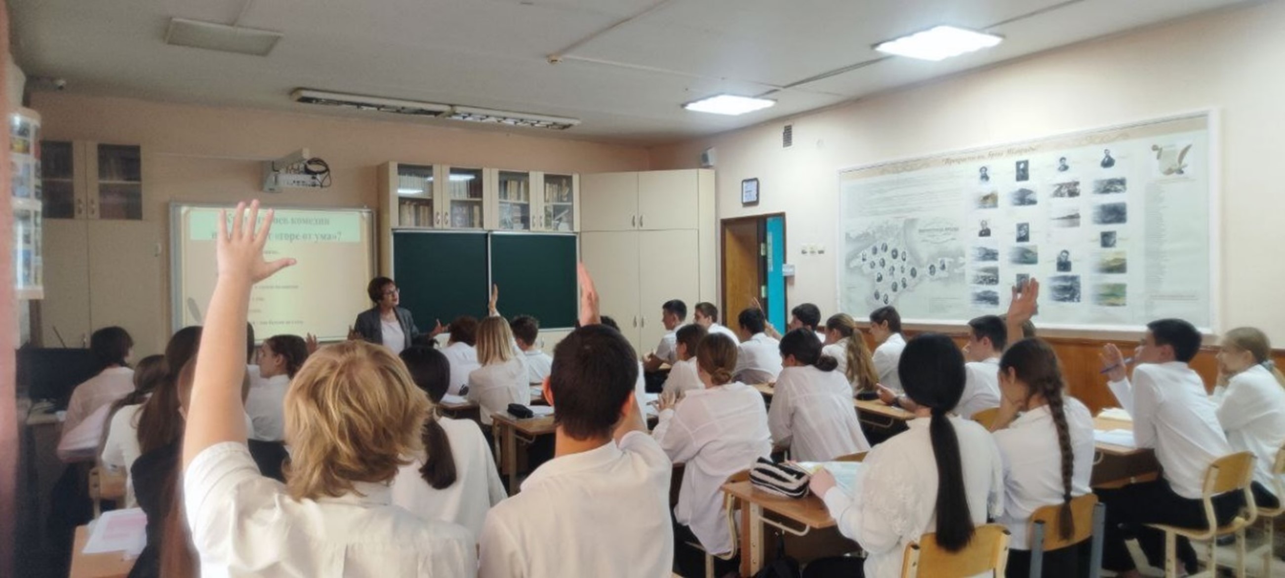 Центральной частью семинара стал демонстрационный урок в 9 классе по теме «Комедия А. С. Грибоедова «Горе от ума» и её герои через призму критики». Урок провела Мыцыкова Ларисова Ивановна — опытный учитель русского языка и литературы, мастерски продемонстрировавшая приёмы активизации познавательной деятельности учащихся, способы организации исследовательской работы с литературно‑критическими источниками, методы формирования аналитических компетенций школьников в рамках системно‑деятельностного подхода.