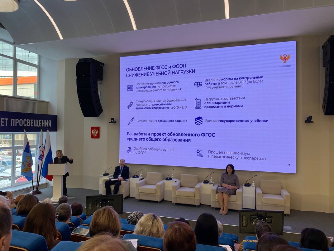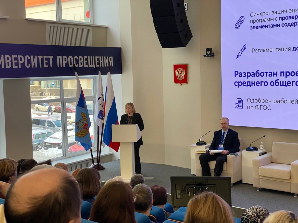 На открытии сессии с докладом об актуальных задачах в сфере дополнительного профессионального образования выступила заместитель Министра просвещения Российской Федерации О.П. Колударова.